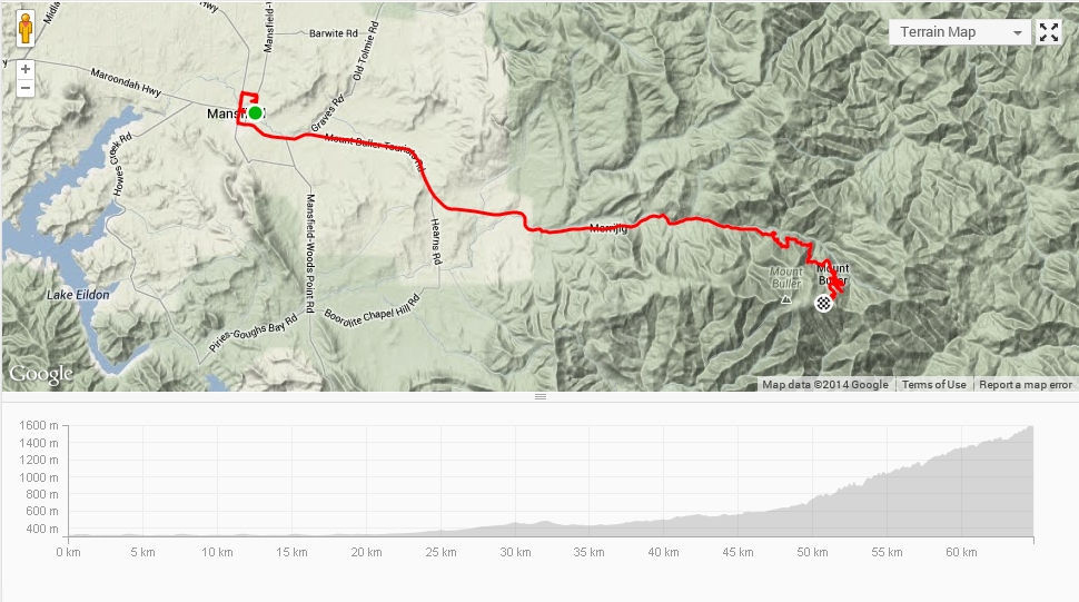 Breaking my arm in a descending crash before Christmas wasn’t ideal preparation for this year’s event. But as a friend pointed out, it’s really the last six weeks before an event that counts. With this in mind I set about doing as much mountain climbing as I could through February and March. We’re lucky to have Mt Donna Buang on our doorstep here in Melbourne. This climb makes for a pretty good simulation of Mt Buller, being around 1 kilometre longer and a fractionally tougher climb. Riding Donna in February, I knocked a good dent in my old PR, and approached the times of B grade climbers.