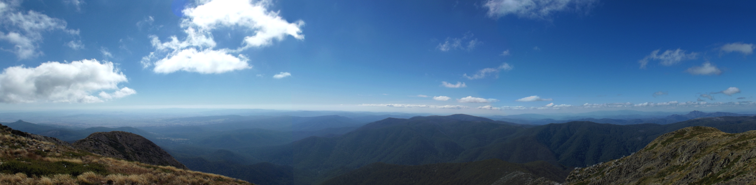 The view from the summit of Mt Buller. Mansfield at left. (click to enlarge)