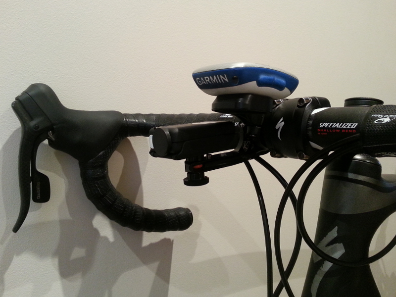 I could make this set up even more compact, attaching the camera to the mount’s underside and directly under the computer, but I ‘d have to forego access to the camera’s buttons whilst riding. The slight downward angle is necessary to capture the road area in front of the bike (there is still a frontal blind spot of about a bike length).