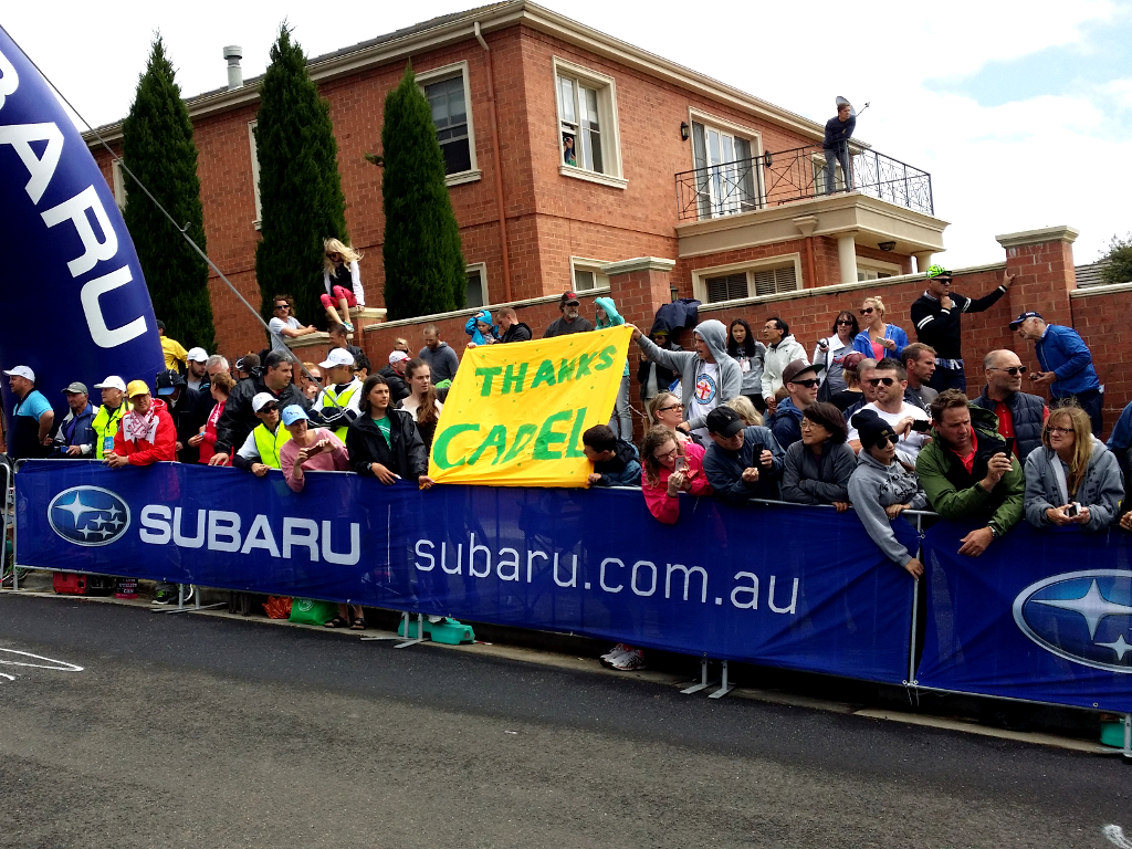 There was some temptation to stay home and watch the inaugural Cadel Evans Great Ocean Road Race on TV. Steady light rain was falling over Eltham as we woke. The radar looked a bit better over Geelong, however, and this was Cadel’s last race, so how could we not go?
