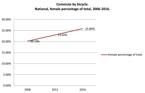 Recently, some controversy has emerged around female participation in cycling commuting, especially in Melbourne. In a troubling piece on the Age one writer suggested a figure of less than twenty percent and implied this was symptomatic of a broader cultural problem. Without getting into that right now (and not to dismiss her experience or concerns at all) let’s look at the actual numbers.