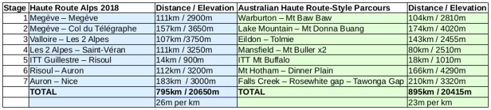 I had a close look at the course profile for the 2018 Haute Route Alps and set myself the challenge of plotting an Australian route which could equal the European experience, stage for stage.