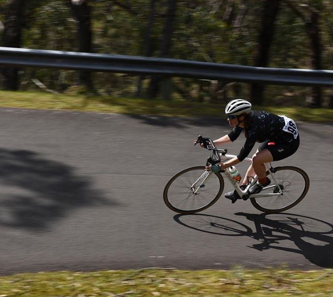 That morning the temperature was sub-zero as Claire barrelled down the Kinglake descent, setting a faster time than most of the guys and feeling good. But as the group came to the Wild Dog descent (named after nearby Wild Dog Creek Rd and also known as ‘The hill before Kinglake descent’) two kangaroos got in their way.
