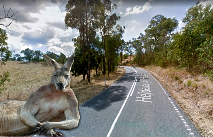 One kangaroo stood in the middle of the road, looking to the next which stood at the road’s edge. The rider in front of Claire pierced between the two animals, but as Claire got nearer the kangaroo on the road looked set to panic. She swerved and lost control at 50kph.