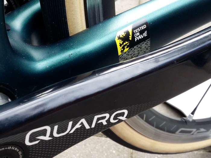 Vos rides what Ridely markets as the Aura SLX – it’s a Helium SLX frame but with a women’s ‘finishing kit’ (ie short reach bars, women’s saddle etc). A Helium by any other name … (similarly, Eddy Merckx bikes, having been bought by Ridley, feature a ‘Stockeu69’ which appears to be a repainted Helium, currently used by Romain Bardet and AG2R).